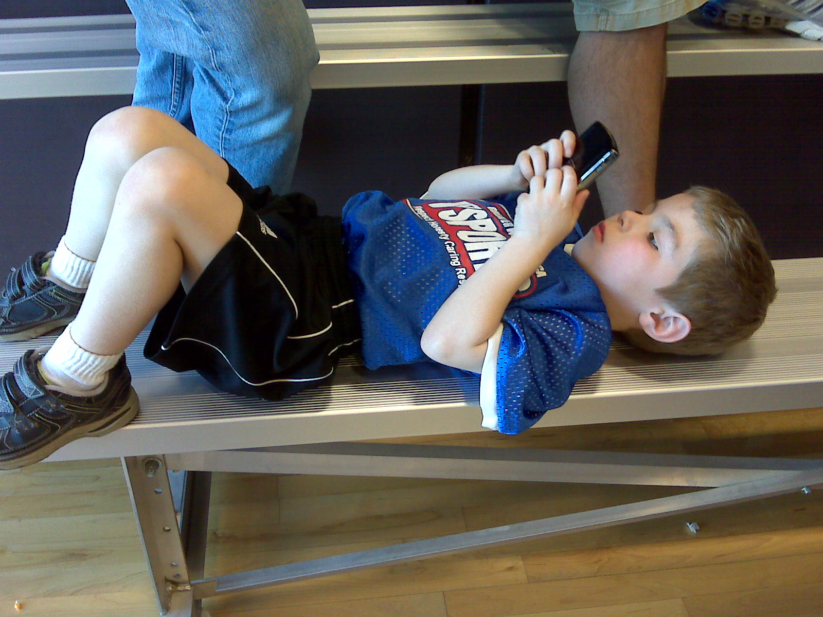 Zach playing BrickBreaker instead of cheering for his brother at Adam’s basketball game.