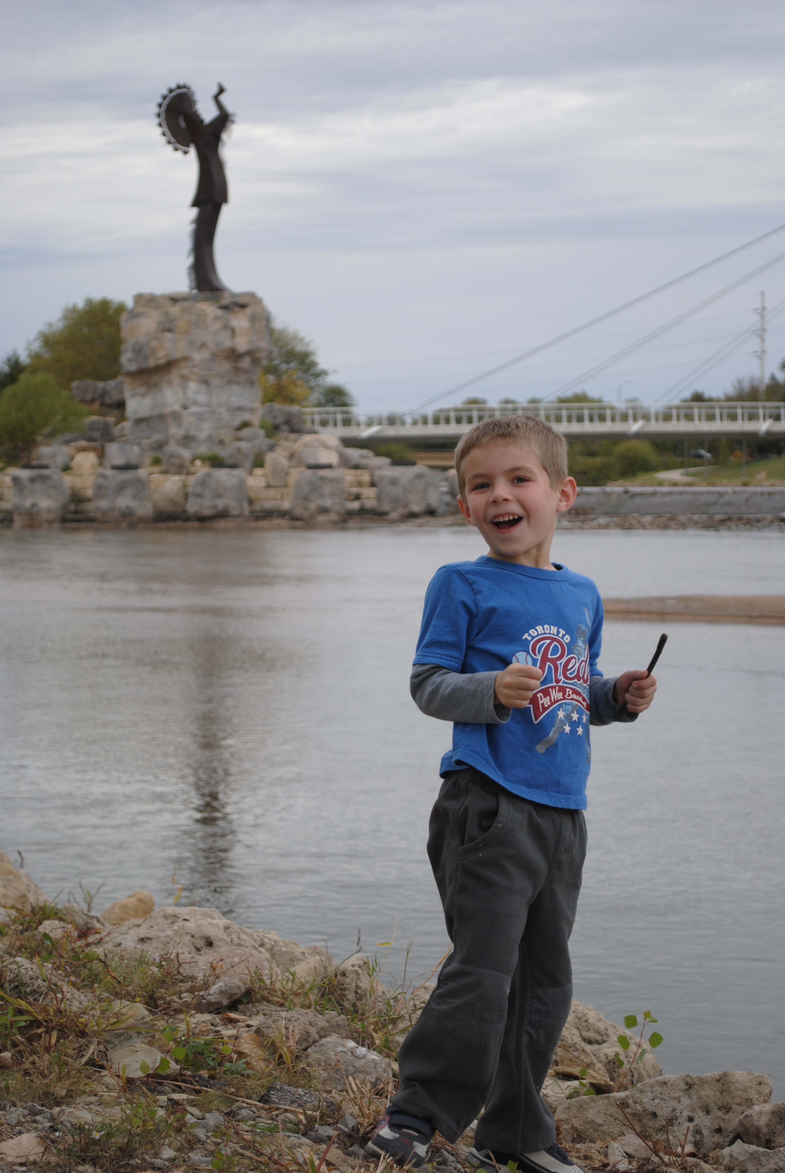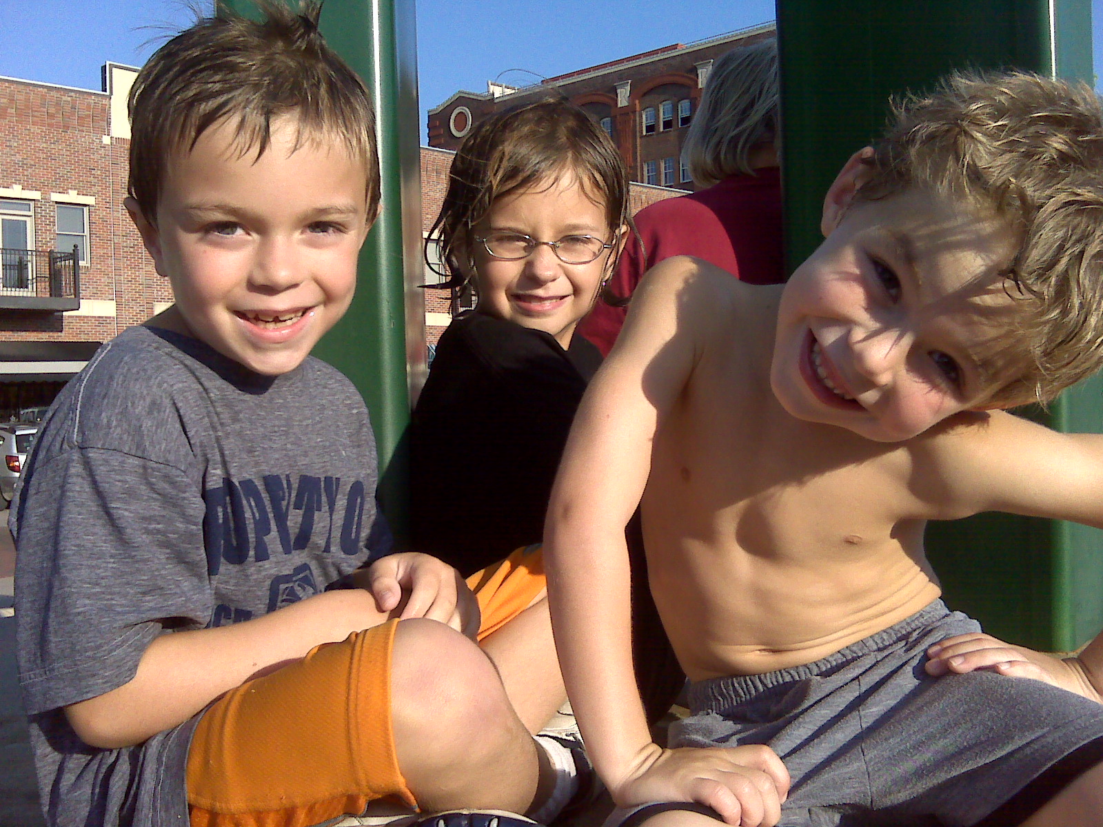 Wichita All-America City celebration in Old Town with our friend Emily, after getting soaked playing in the fountain.