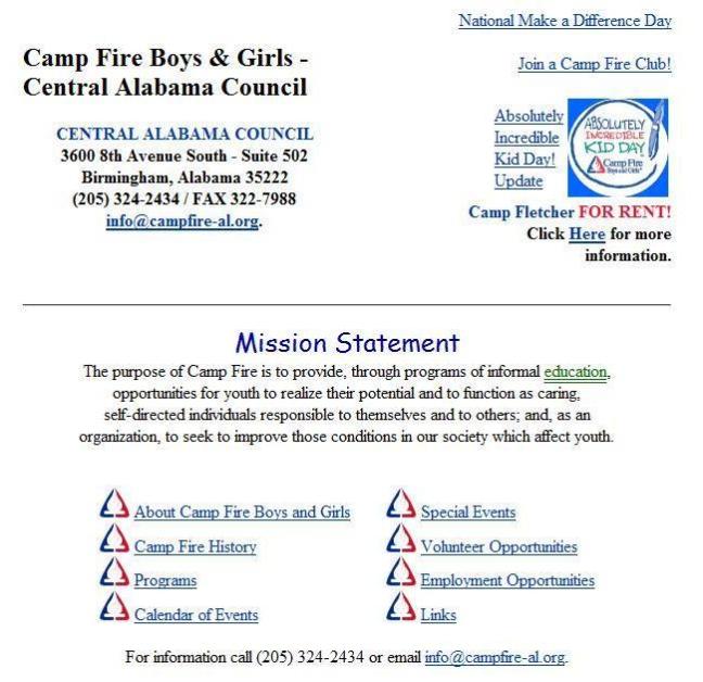 This is a screen shot of the first website I managed…in 1999. It is also this organization’s first website.