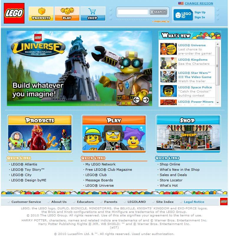 Just to compare, here is the current Lego website.
