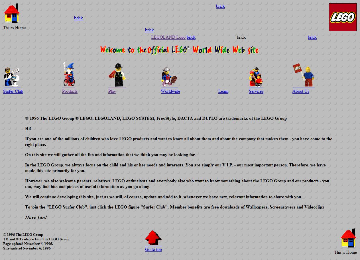 Here’s the Lego website from 1996 (a site we frequent in our house).