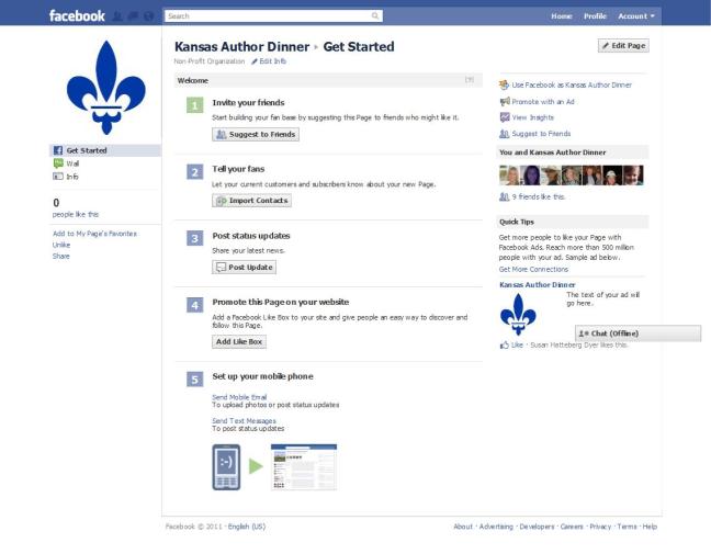 As the administrator of this page, I had been posting content (status updates, links and pictures) for a good nine months. This is the page I saw when I logged in as the administrator: