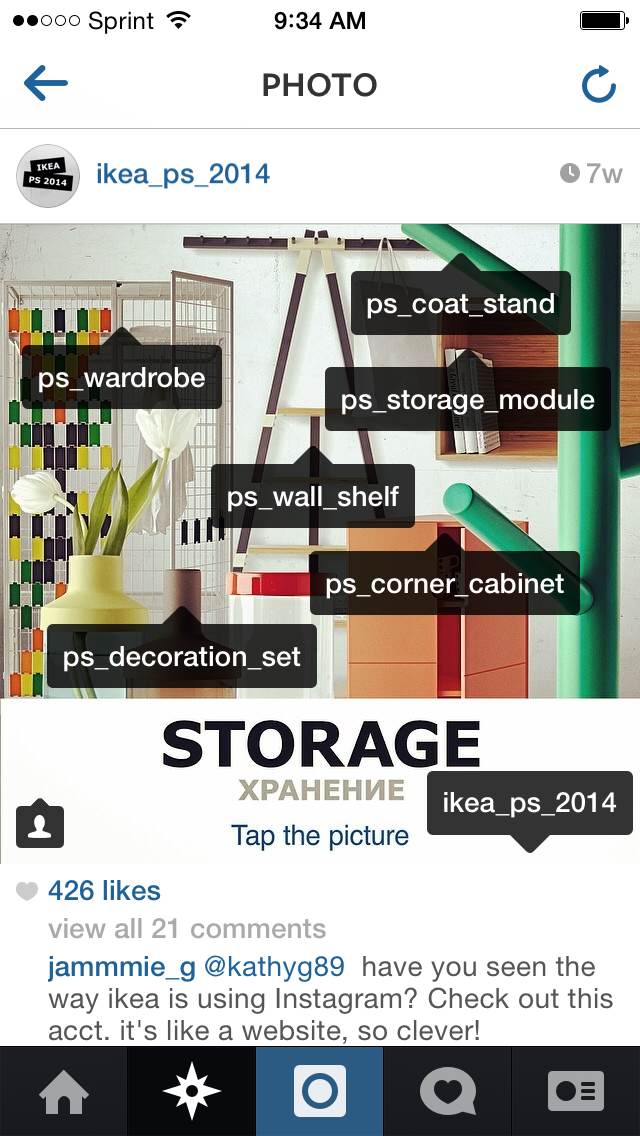 Using Instagram as a website? Who knew? IKEA leveraged the tagging ability in Instagram to its benefit with the new ikea_ps_2014 account. For example, IKEA posts a picture of a table chair and lamp from their store. The table, chair and lamp also have their own Instagram accounts, so they will “tag” the table, chair and lamp. If you click on the “tag”, it will take you to that product’s Instagram account.