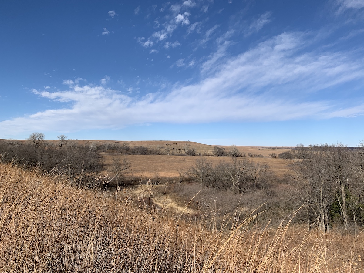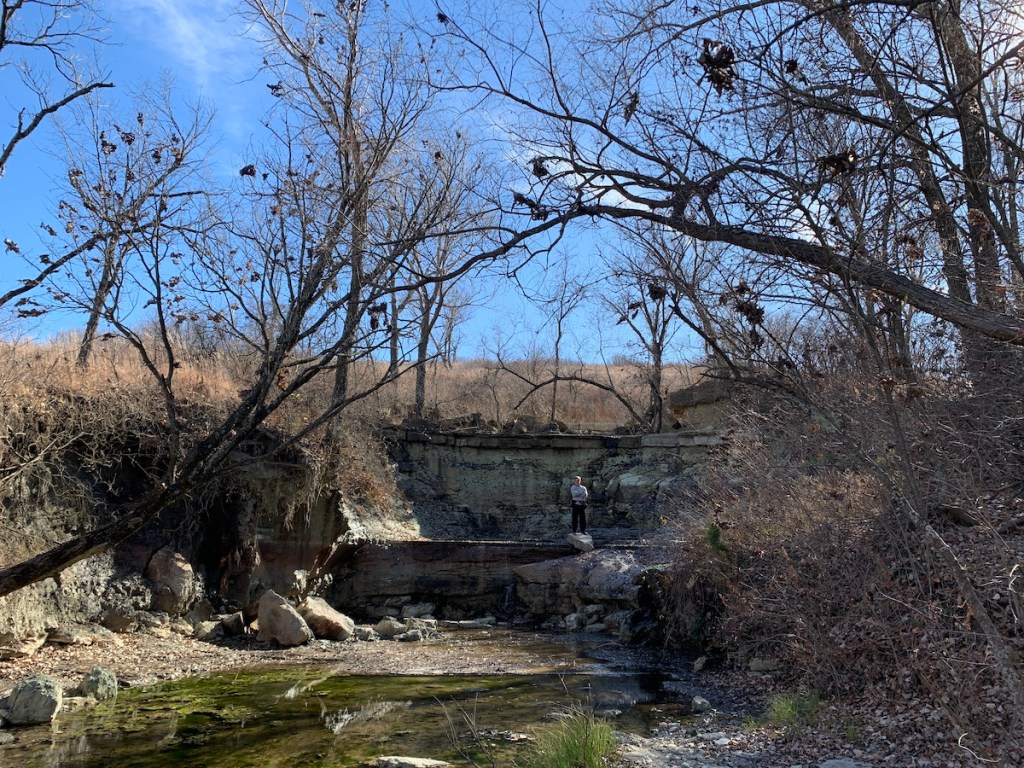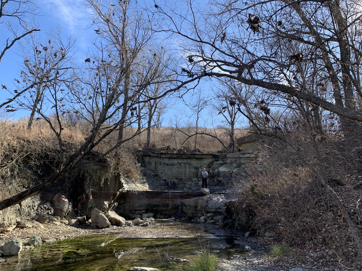 We hiked up through the prairie, and back down to the waterfalls, but the river was dried up. This is at the top of what is supposed to be the start of the falls.