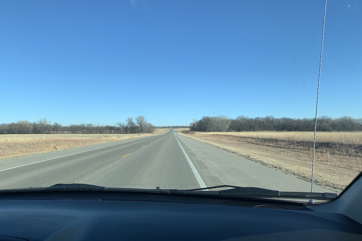 Middle of nowhere Kansas. We didn’t see many other cars on the road today.