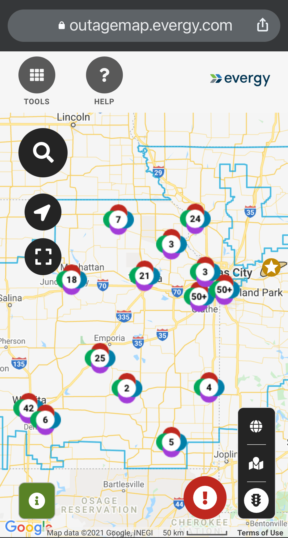 There’s a map you can check to monitor the #RollingBlackouts. This is the whole service area, which includes the eastern half of Kansas and the Kansas City area.