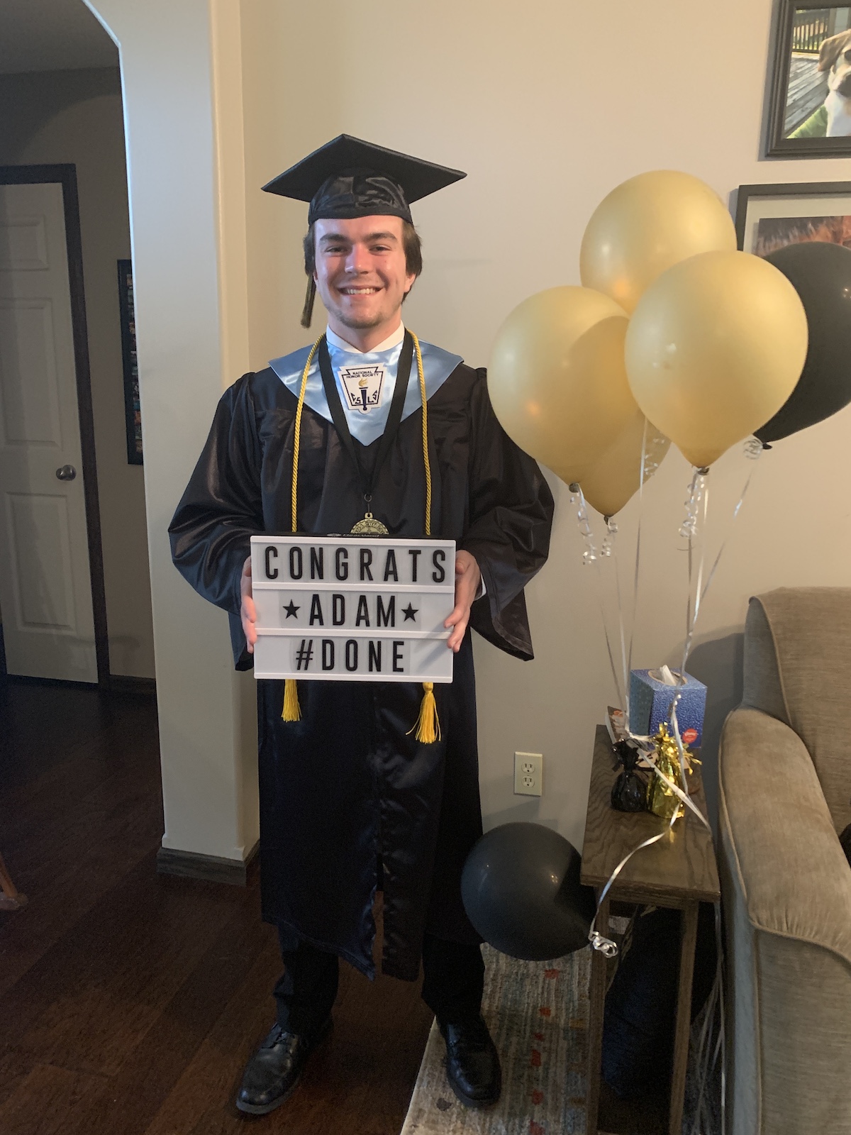 It’s for real. Adam is a high school graduate! And what a strange senior year with the pandemic still in full swing, temperature checks at the door, mask mandates, not to mention moving from hybrid school to all-virtual, back to hybrid and finally full in-person.