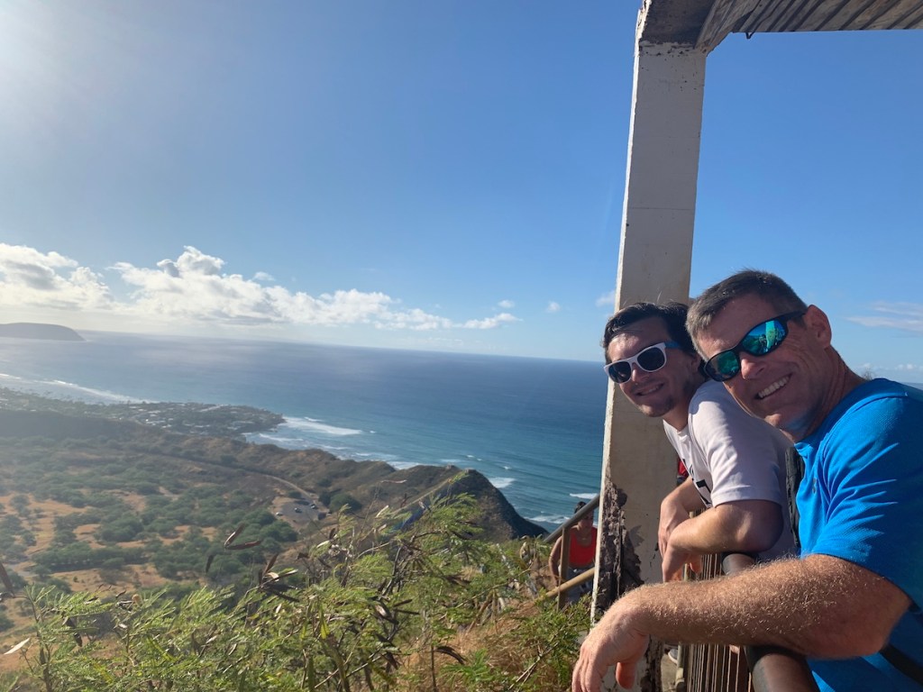We caught a taxi and by 7 a.m., we were on our hike to the top of Diamond Head crater. Pro tip: our taxi driver, Peter, told us Uber is cheaper for groups of 3 or less, but a taxi is more affordable for groups of 4 or more. Uber said $43 to Diamond Head. The taxi charge was $20. We ended up calling Peter three more times for a ride!