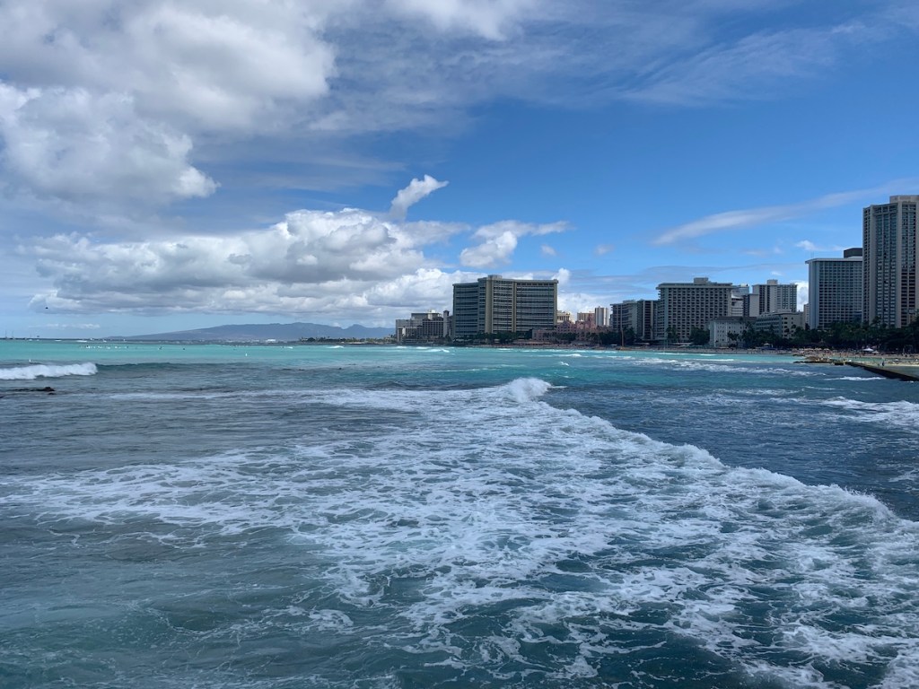 We arrived in Honolulu around 1:30 p.m. Hawaii time, 6:30 p.m. Kansas time. After a $115 Uber bill from the airport to our hotel, our first stop was getting a “real meal.” The plane had snack boxes for purchase, but that wasn’t quite enough.