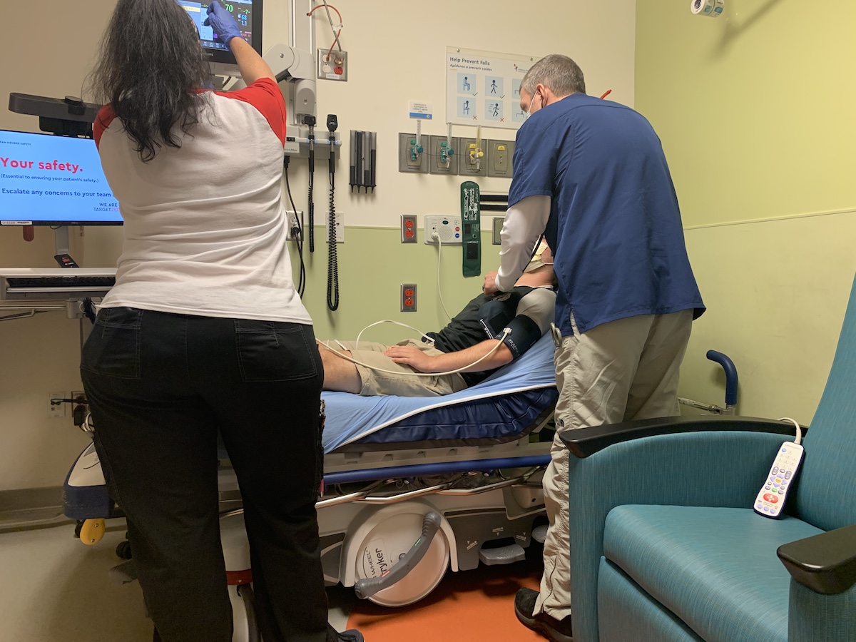 They hear a heart murmur so we get an Echo (Echocardiogram) too. The hospital is a teaching hospital so we see a couple of nurses, doctors, a cardiologist, and medical students. They decide the heart murmur is nothing (it’s a common thing I guess), and we are released.