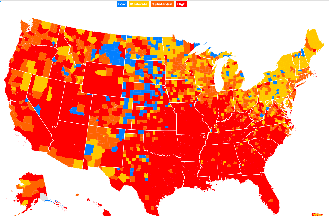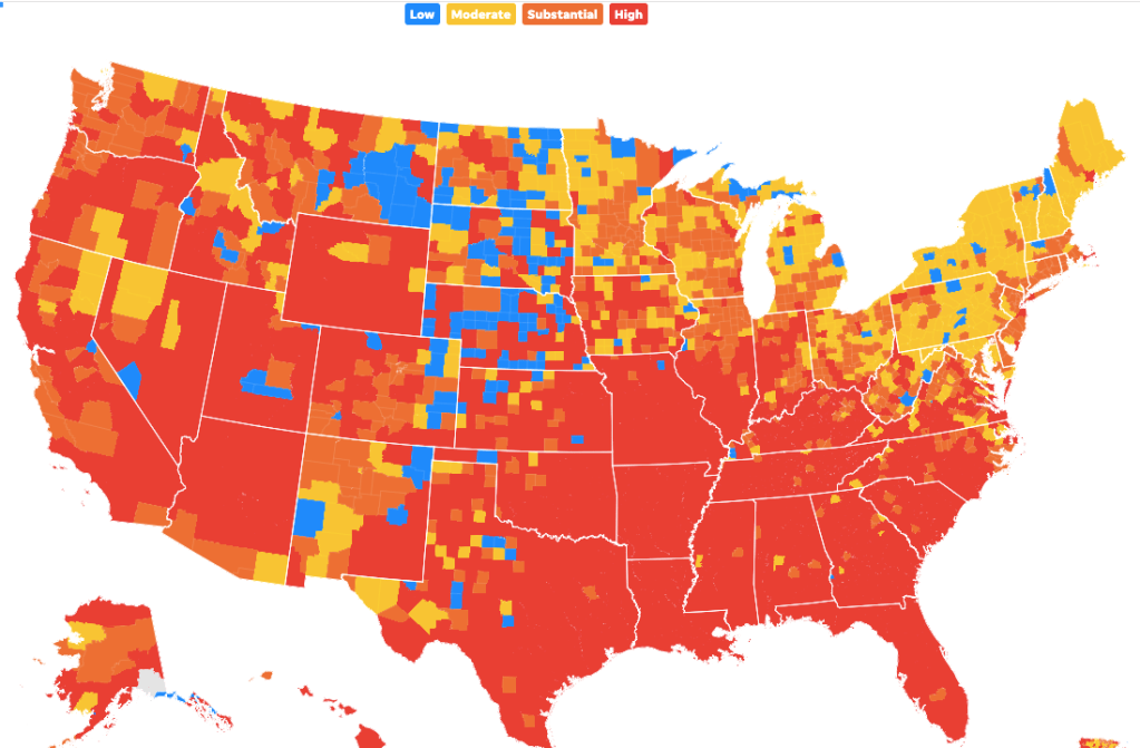 COVID had other plans. By July, the Delta variant brought hospitals back to capacity. It’s more contagious and has a shorter incubation period. With this new variant, more than 75% of the country has a “high” transmission rate.