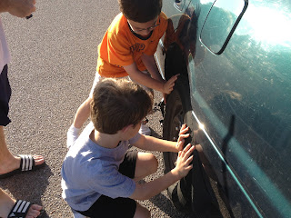 In 2012, we taught the boys how to change a tire on the Camry.