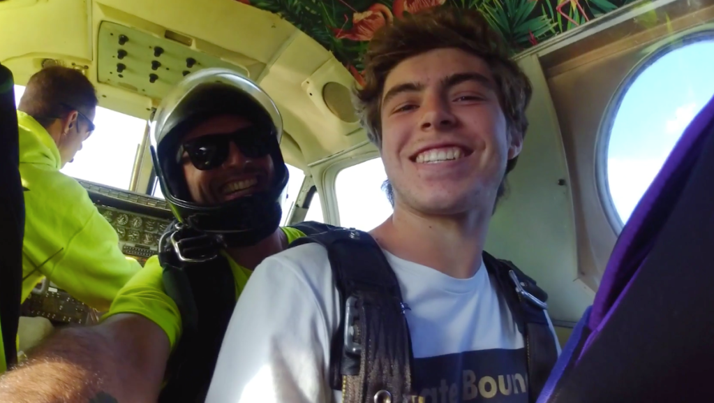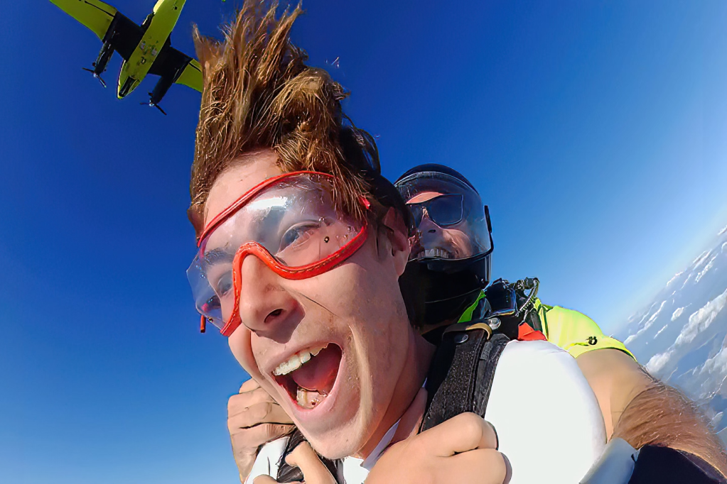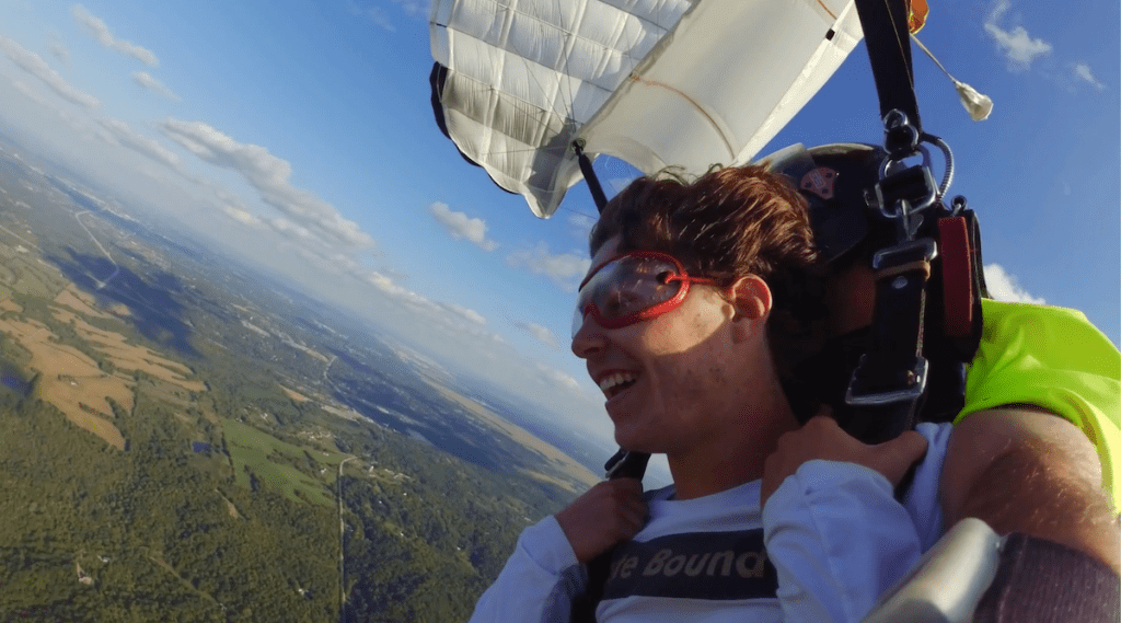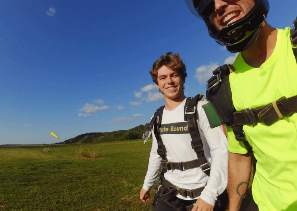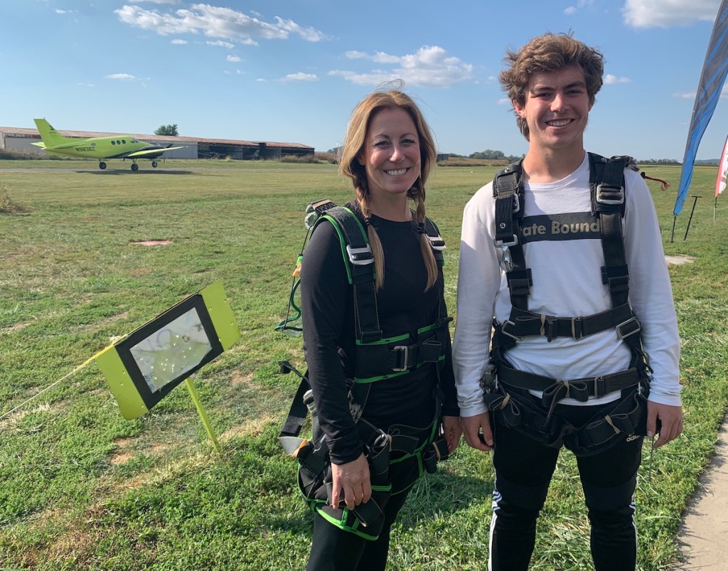 Some places allow 16 year olds to skydive, but the place we went required skydivers to be 18. Aunt Lisa was here, and she jumped with him!