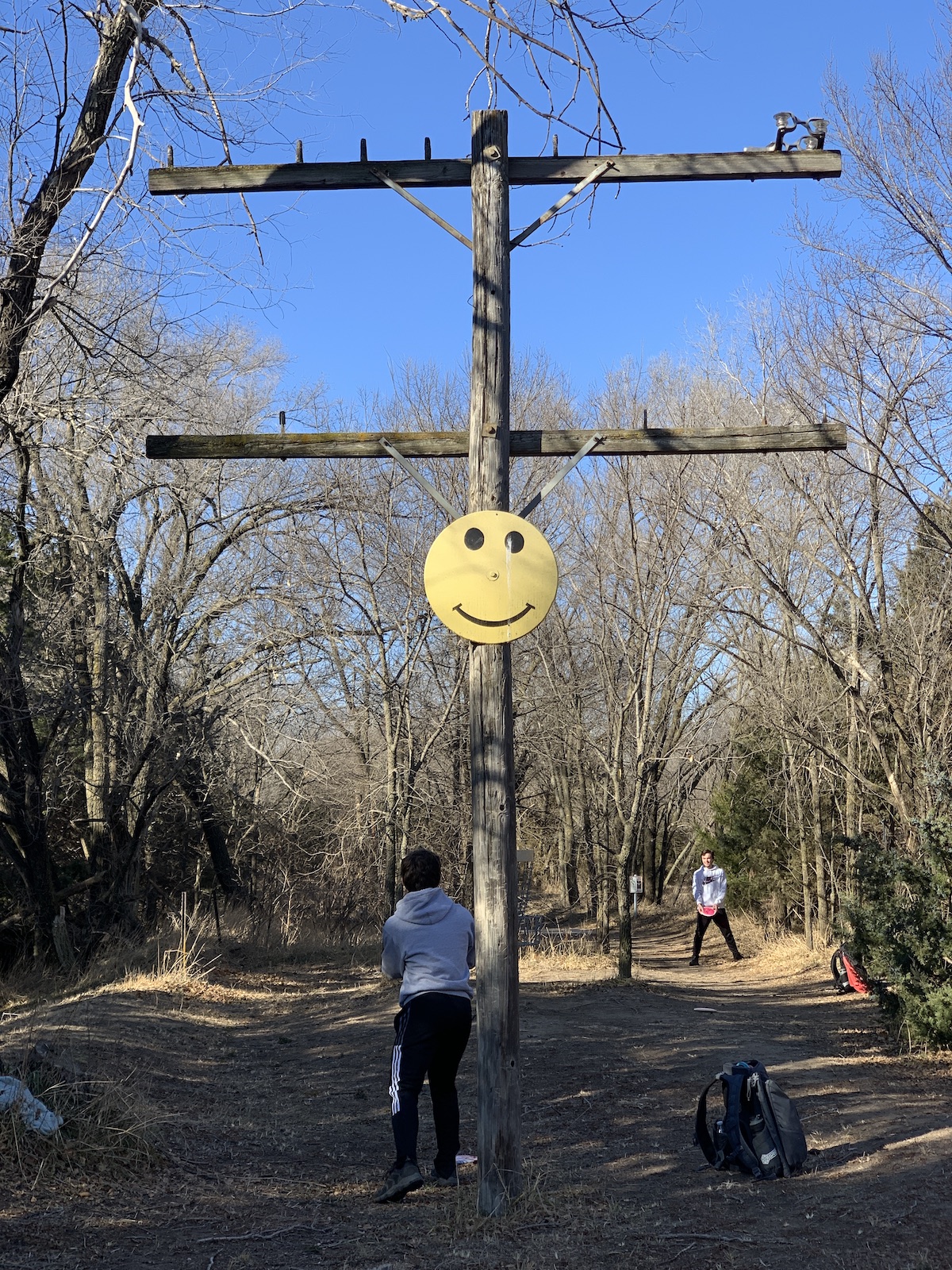 This was hole #4, a top a little dirt mound. I put my phone in a tree and used the timer on my watch. It would have been a good picture, if it was in focus. π