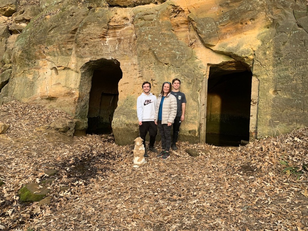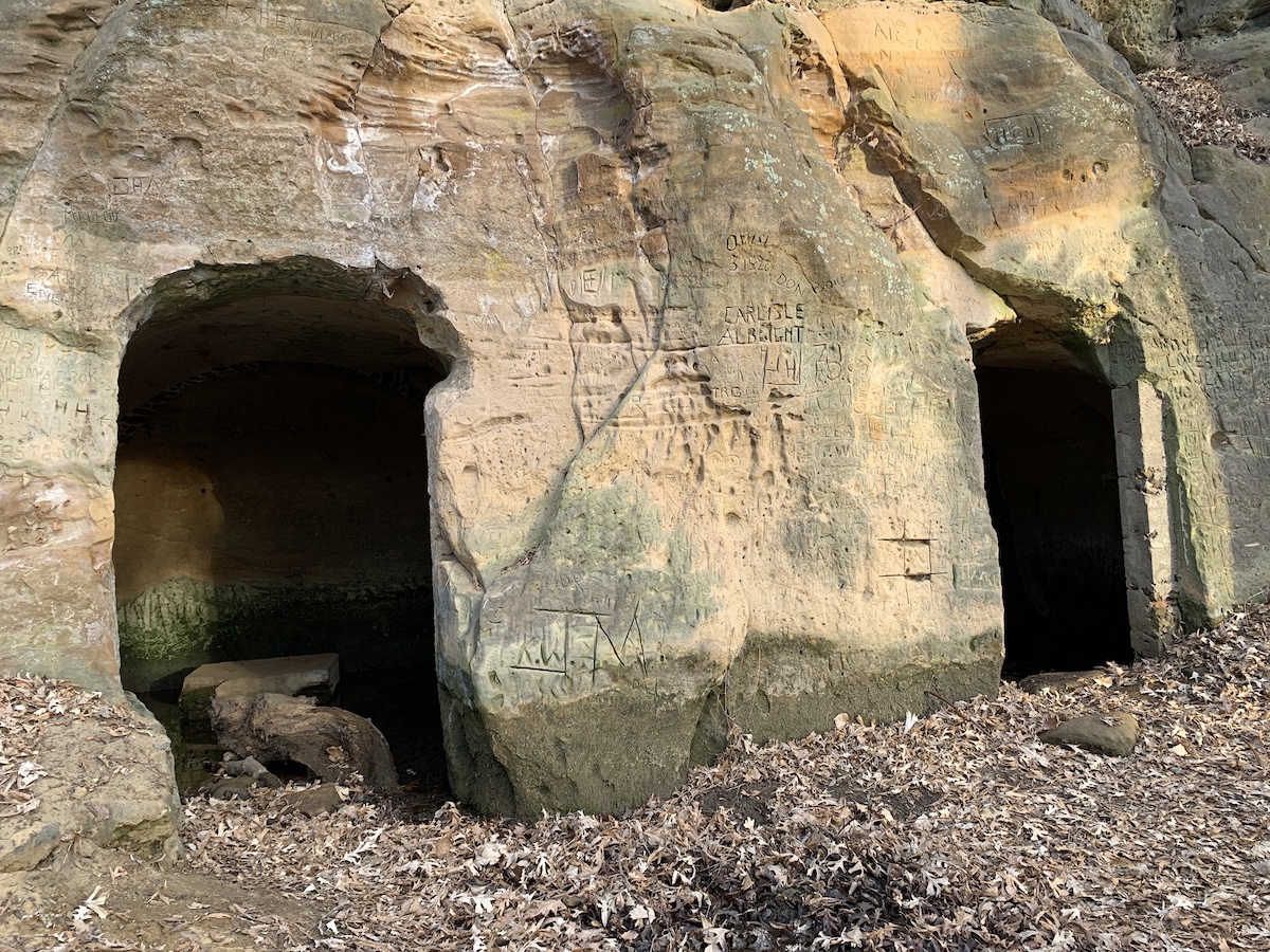 The rule is, if we play disc golf, everyone must now visit a historical or cultural site. Our pick this year was the Faris Caves. (Last year we visited Clements Stone Arch Bridge). There’s not much information about them online, but I did find this.