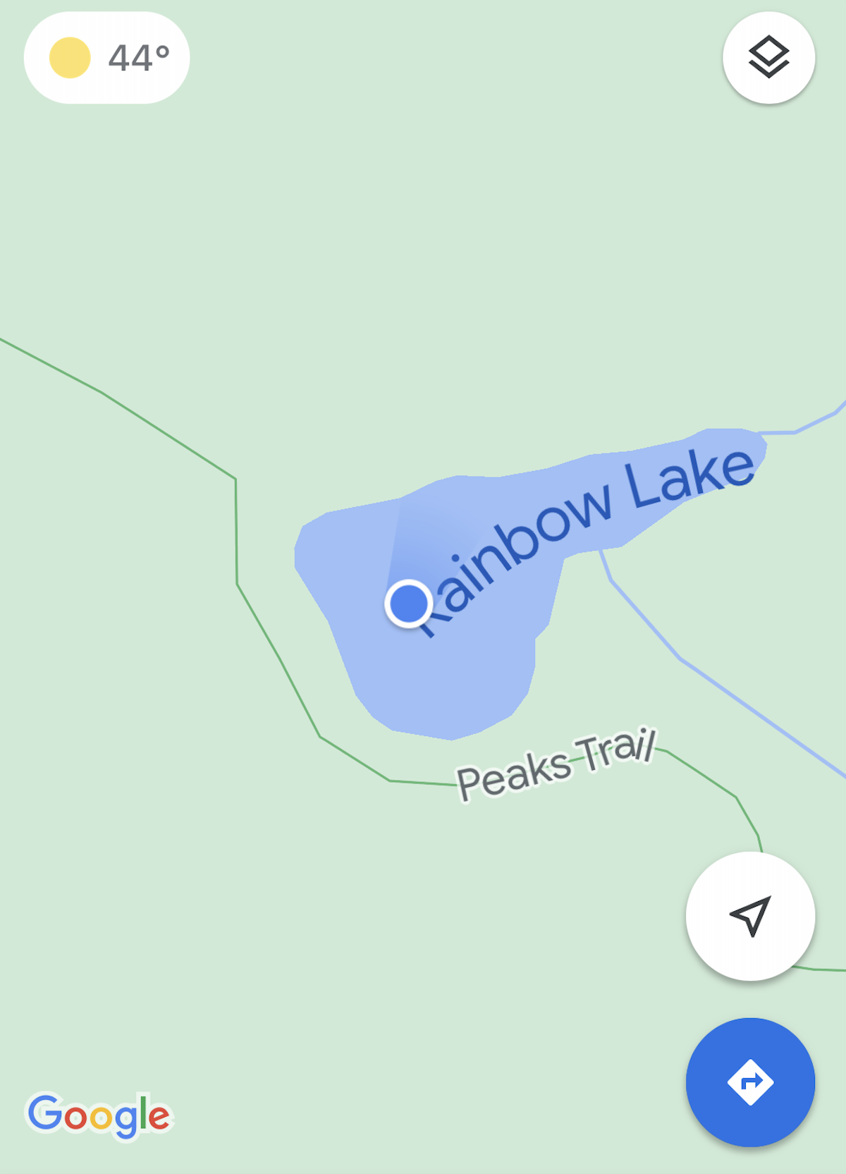 We decided last minute to do the one-mile hike to Rainbow Lake Trailhead. Neither one of us had “hiking attire” on, but we made it work.