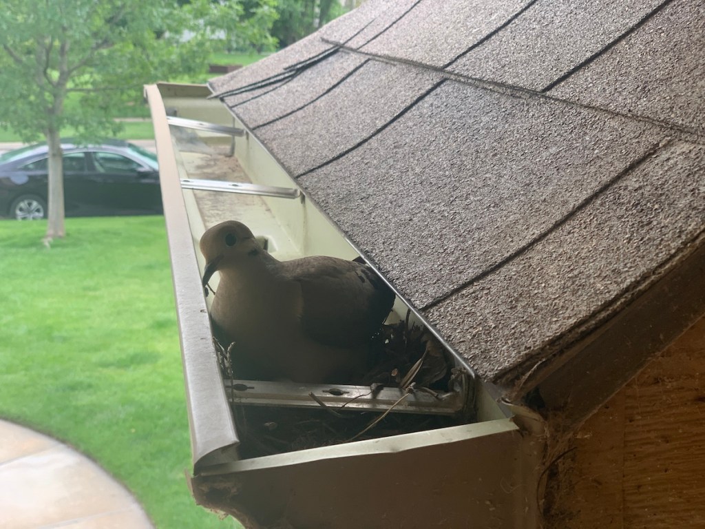 A bird made a nest in our gutter right outside our front door. Another one used our basketball goal.