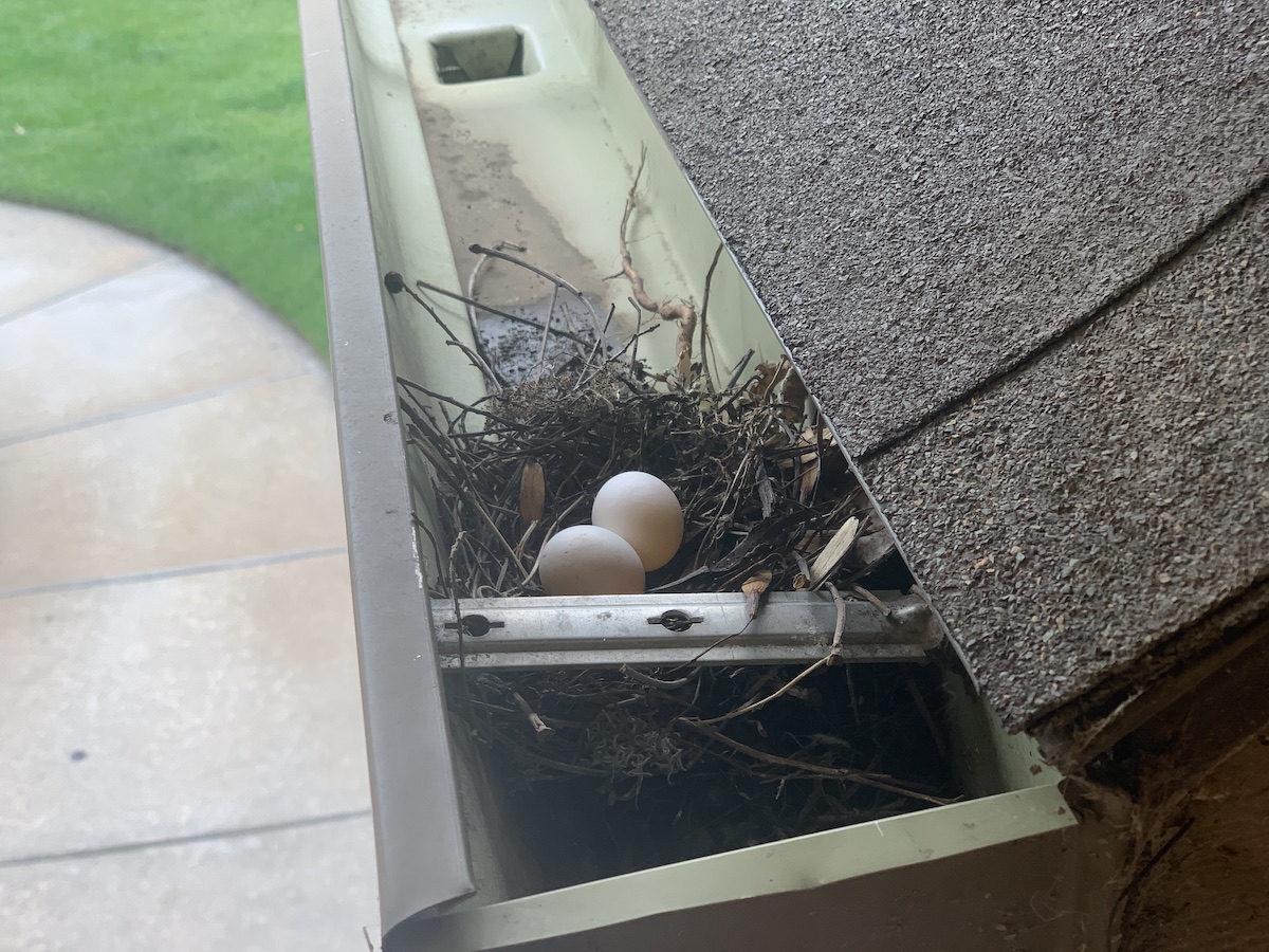 A bird made a nest in our gutter right outside our front door. Another one used our basketball goal.