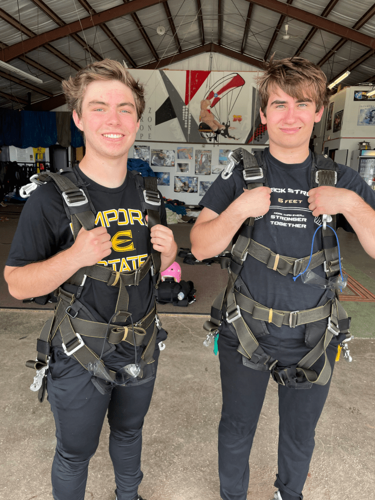 Kid #2 went skydiving again, this time with another friend.
