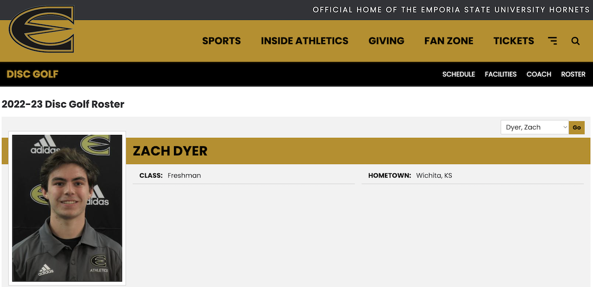 Kid #2 made the inaugural Emporia State University Disc Golf team!
