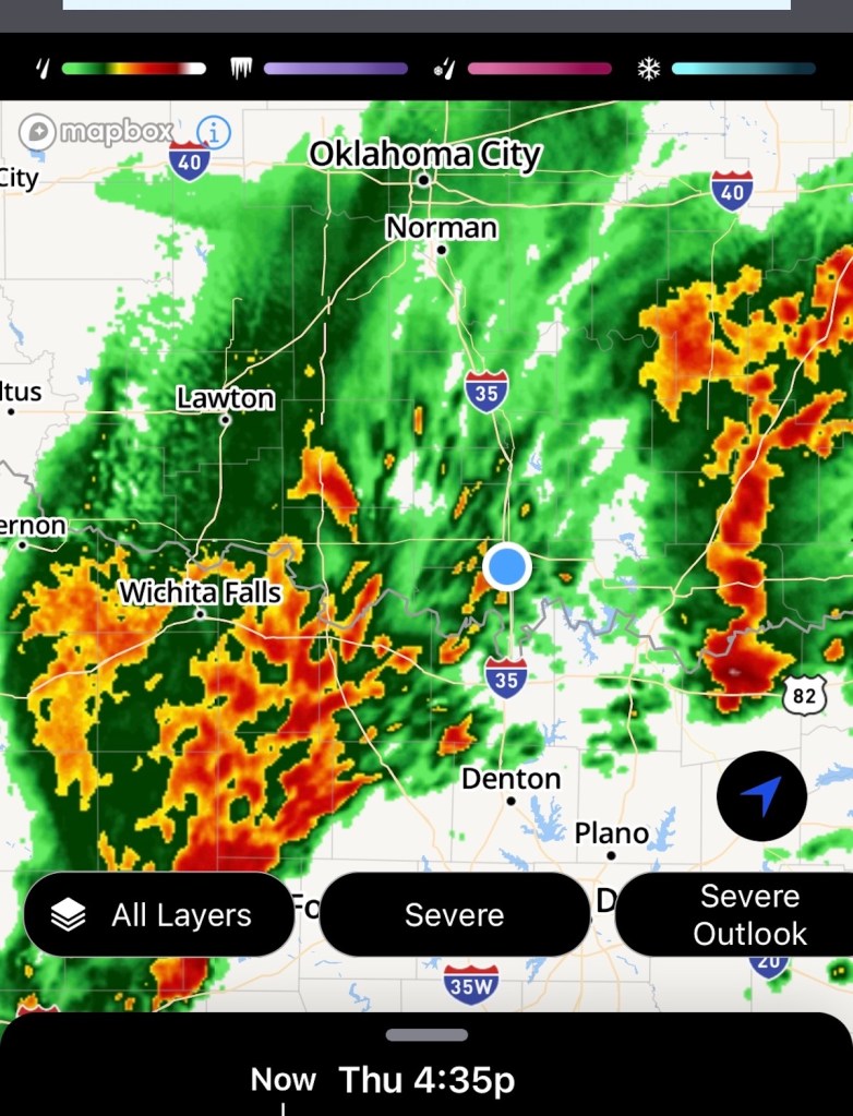 On the way home, I had a connecting flight in Dallas. That area was getting hit with severe weather and when we landed, my airline app informed me my flight home had been cancelled, and I was on the next available flight, which was two days from now!