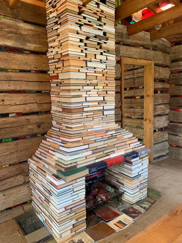 I had never been to the Philbrook and it did not disappoint! The inside is gorgeous and the grounds were beautiful too! It was a nice day so we spent quite a bit of time outside. There’s a cool cabin you can walk through where the fireplace is made of books and the windows were beautiful stained glass.