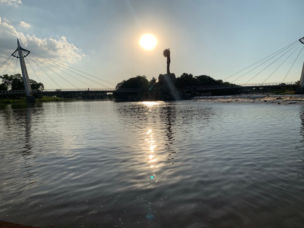 Saturday night, Zach and I ate at Public and then took a little boat ride on the River. We paid $5 per person for a 15 minute boat ride. We got on under the Douglas street bridge, rode to the Maple street bridge, and then by the Keeper of the Plains.