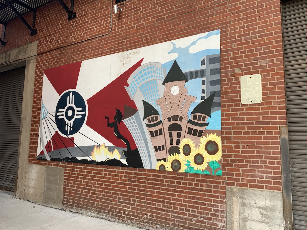 On the walk back to the hotel, we found one of the Alley Doors, a downtown project that repurposes back-of-building doors into pieces of artwork. We also went by one of the many murals around town.