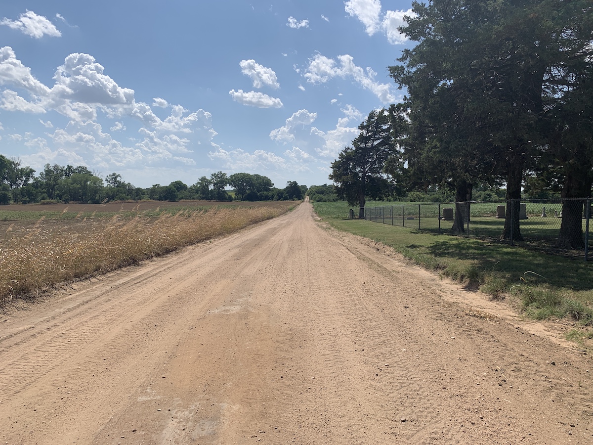 Nest stop Yaggy, KS. Not much to offer here. Everything we read said there were still two huge white plantation homes, but since they are privately owned now they are inaccessible. The Wichita Eagle reported Yaggy was once home to 50,000 apple and a million catalpa trees and was the largest shipping point for fruit between the Missouri River and California. The orchards were lost to a drought in the 1930s, and now are fields of wheat.