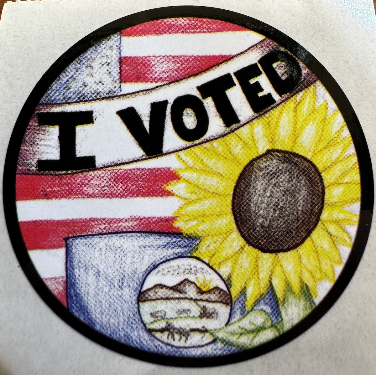 It is a nice change from the generic sticker offered in the past, and is a nice tribute to Kansas with the prominent sunflower and our flag. This was the winning contest entry and created by a local 8th grade student. This is a great way to get students involved, event before they are eligible to vote.